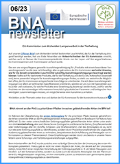 EU-Kommission zum drohenden Lampenverbot in der Tierhaltung: Antwortschreiben der EU-Kommission eingetroffen / BNA nimmt an der Projektbegleitenden Arbeitsgruppe (PAG) zu prioritären Pfaden invasiver gebietsfremder Arten im BfN teil: Kritisch-konstruktives Einbringen in die Diskussion und Begleiten der Überarbeitung des Aktionsplans / Rückblick auf 2023 und Ausblick auf 2024 / Weihnachtsgrüße und Betriebsferien (27.12.2023 bis 05.01.2024)