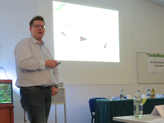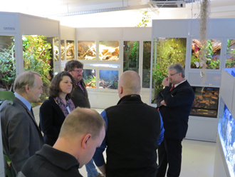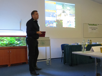 | Kurzreferate von Diplom-Biologe Heiko Blessin, JBL/Neuhofen (Bewusstseinsförderung für den Tierschutz), Zierfischimporteur Bernd Schmölzing (EFS) und Jürgen Hoch (Import/Export, Waldshut) waren ebenso Bestandteil des Fachgesprächs wie ein ausführlicher Rundgang durch das großräumige Schulungszentrum mit Volieren, Gehegen, Aquarien und Terrarien. |