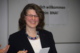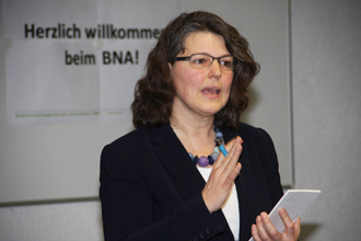 Bild 3: Ute Vogt, stellvertretende SPD-Fraktionsvorsitzende, im BNA-Schulungsraum bei der Vorstellung der Position ihrer Partei |