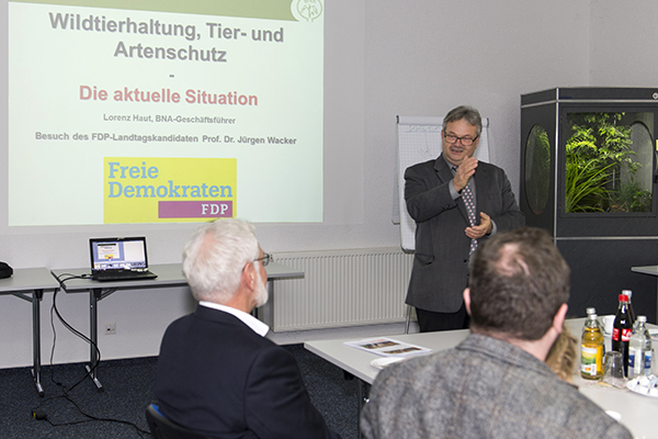 BNA-Vizepräsidentin Dr. Gisela von Hegel erläuterte dem FDP-Landtagskandidaten Prof. Wacker die Problematik im Tier- und Artenschutz