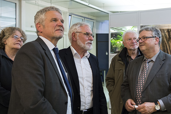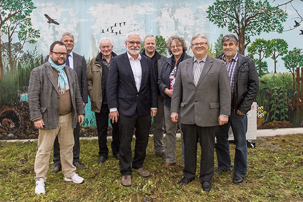Von links nach rechts: Dr. Christian Jung, FDP, Bürgermeister Thomas Ackermann, Herbert Geitner, VDW, FDP-Landtagskandidat Prof. Dr. Jürgen Wacker, Jürgen Hirt, BNA, Dr. Gisela von Hegel, BNA, Lorenz Haut, BNA und Willi Debatin.